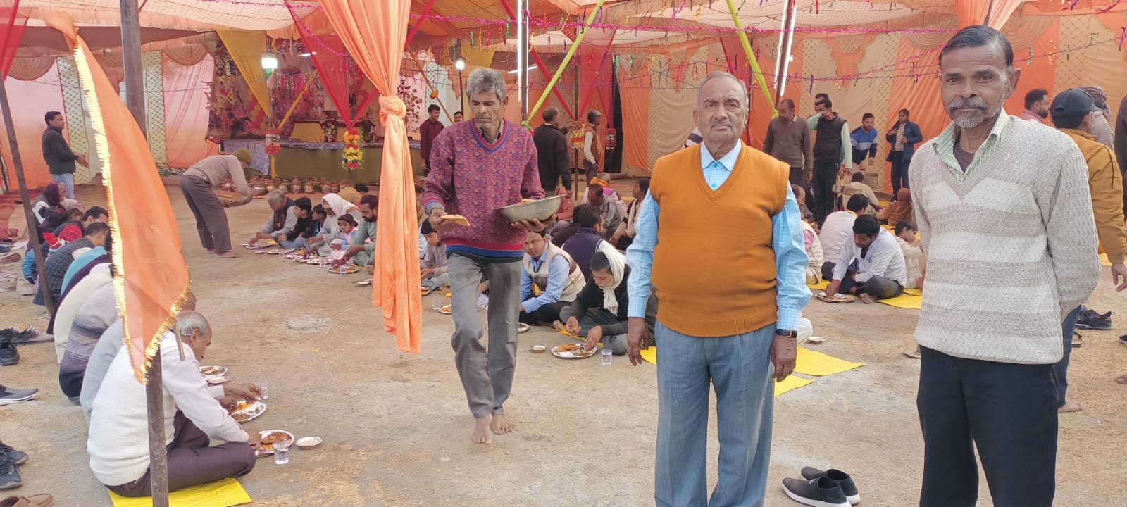 कोंच (जालौन )राम कथा श्रवण मात्र से ही पाप नष्ट हो जाते हैं और अनुशरण से जीबन धन्य हो जाता है ऐसी पुनीत सात दिवसीय राम कथा ग्राम भदारी स्थित परमहंस तोताराम महाराज की समाधि स्थल पर अनवरत रूप से चल रही थी जिसका समापन दिन गुरुबार को पूर्ण आहुति के साथ हो गया है जिसके बाद अनुयायियों द्वारा विशाल भंडारे का आयोजन किया गया जिसमें कन्या भोजन के उपरांत क्षेत्रीय लोगों द्वारा बड़ी संख्या में पहुंचकर प्रसाद ग्रहण करके अपने जीबन को धन्य बनाया और यह सिलसिला दोपहर 12 बजे से प्रारम्भ होकर देर रात्रि तक चलता रहा वहीं भंडारे की व्यबस्था में लल्ला भैया मंगल सिंह दादी शरद पटेल बिट्टू पटेल मुन्ना पटेल दुर्जन सिंह पटेल राजू पटेल सुशील पटेल लाल साजन दुर्जन सिंह विनोद कुमार शारदा प्रसाद मुन्ना अनुराग पटेल सहित तमाम अनुयायी मौजूद रहे।