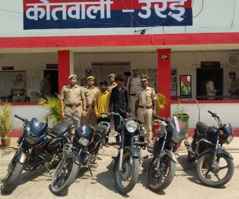 उरई (जालौन) जनपद जालौन की कोतवाली उरई पुलिस को वाहन चोरी के मामलों में बड़ी सफलता हाथ लगी है। सघन चेकिंग अभियान के दौरान पुलिस टीम ने दो शातिर वाहन चोरों को गिरफ्तार करते हुए उनके कब्जे से चोरी की पांच मोटरसाइकिलें बरामद की हैं।प्राप्त जानकारी के अनुसार, कोतवाली उरई पुलिस द्वारा क्षेत्र में संदिग्ध व्यक्तियों और वाहनों की सघन जांच की जा रही थी। इसी दौरान पुलिस को दो युवक संदिग्ध अवस्था में दिखाई दिए। रोककर पूछताछ करने पर दोनों ने संतोषजनक जवाब नहीं दिया, जिस पर पुलिस ने सख्ती से पूछताछ की।पूछताछ में दोनों अभियुक्तों ने वाहन चोरी की कई घटनाओं में अपनी संलिप्तता स्वीकार कर ली। उनकी निशानदेही पर पुलिस ने अलग-अलग स्थानों से चोरी की गई पांच मोटरसाइकिलें बरामद कर लीं। पुलिस के अनुसार, बरामद सभी बाइक पहले से दर्ज चोरी के मामलों से संबंधित हैं।पुलिस ने दोनों आरोपियों के खिलाफ संबंधित धाराओं में मुकदमा दर्ज कर उन्हें न्यायालय में पेश कर दिया है। साथ ही गिरोह के अन्य सदस्यों की तलाश में पुलिस टीम लगातार दबिश दे रही है।इस कार्रवाई से क्षेत्र में वाहन चोरी की घटनाओं पर अंकुश लगने की उम्मीद जताई जा रही है। स्थानीय लोगों ने पुलिस की सक्रियता की सराहना करते हुए इसे सराहनीय कदम बताया है।