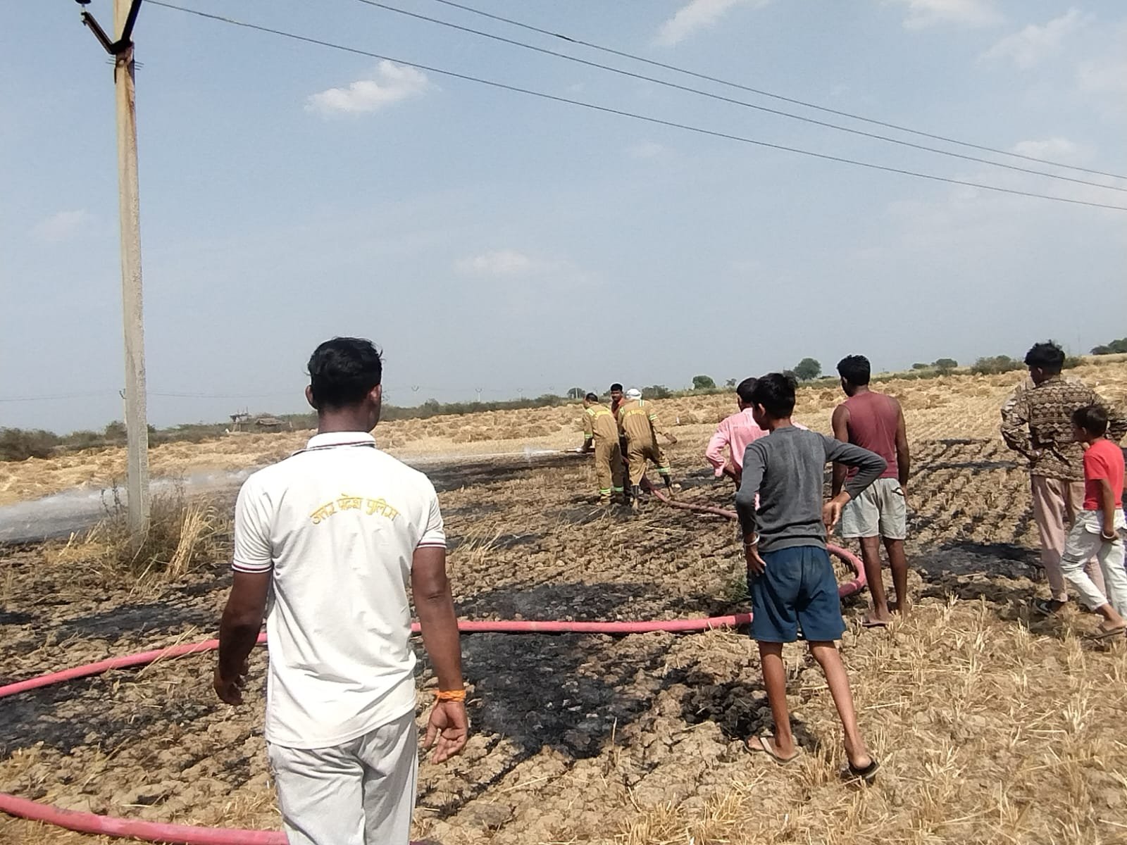 फोटो – खेतों में लगी आग को बुझाने में जुटे कर्मचारी