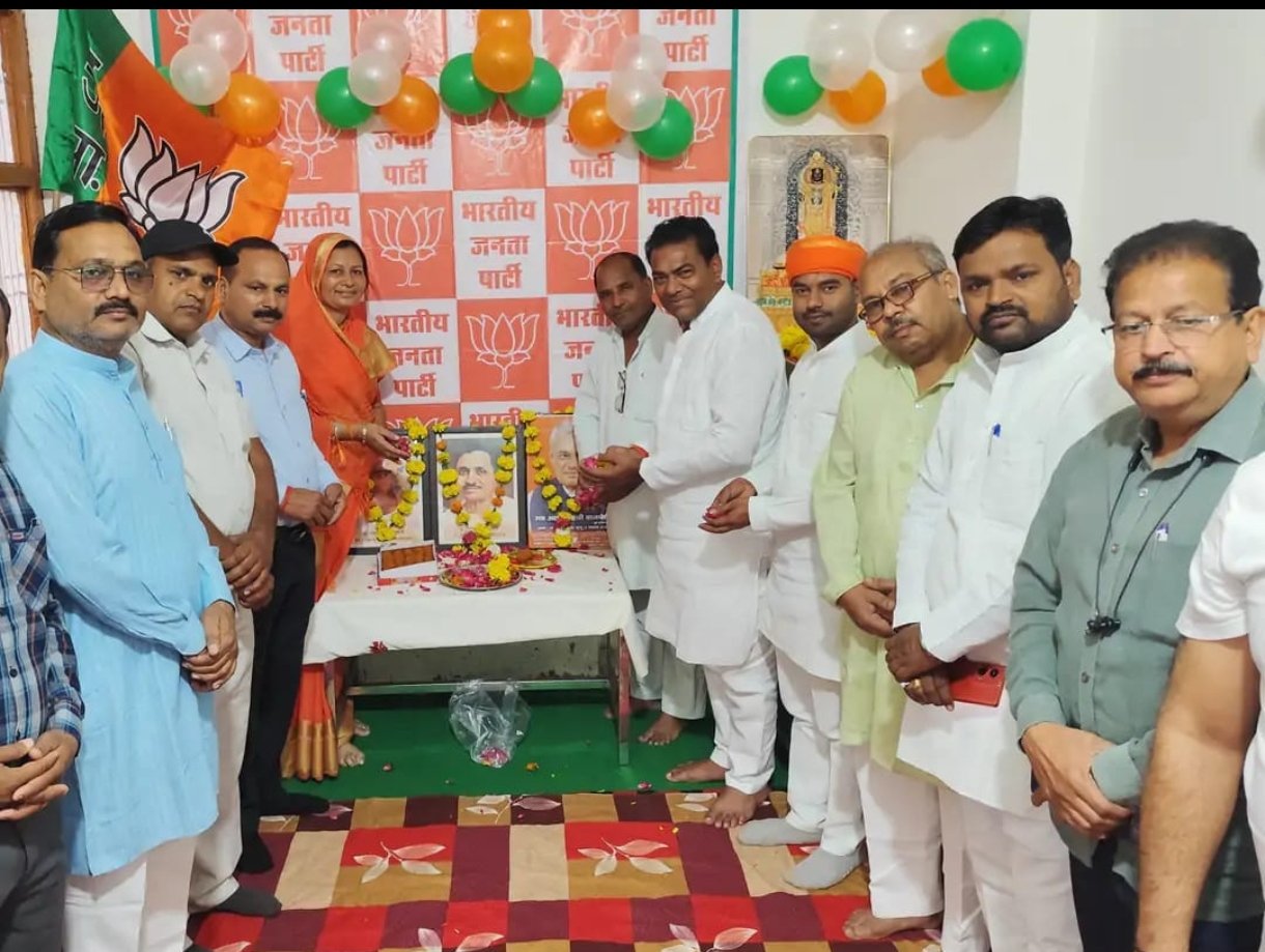 कोंच (जालौन) दिन सोमवार को मुहल्ला लाजपत नगर नझाई बाजार स्थित भा ज पा कार्यालय में क्षेत्रीय विधायक मूलचन्द्र निरंजन व पालिकाध्यक्ष प्रदीप कुमार गुप्ता के मुख्य आतिथ्य में भारतीय जनता पार्टी की नगर इकाई ने पार्टी ध्वज फहराकर अपना स्थापना दिवस मनाया जिसमें सर्व प्रथम पं.श्यामा प्रसाद मुखर्जी एवं पं.दीन दयाल उपाध्याय के चित्रों पर माल्यार्पण कर उन्हें श्रद्धांजलि दी गयी इसके उपरांत कार्यकर्ताओं ने नगर अध्यक्ष अंजू अग्रवाल के नेतृत्व में कार्यालय की छत पर पार्टी ध्वज फहराते हुए एकजुट होकर संगठन को मजबूत करने का संकल्प लिया इस अवसर पर क्षेत्रीय विधायक ने स्थापना दिवस पर बोलते हुए कहा कि भा ज पा एक राजनैतिक दल नहीं बल्कि देशहित और समाजसेवा के लिए समर्पित एक बिचार धारा है और पार्टी ने अच्छा प्रदर्शन एवं जनमानस के हित में कार्य करते हुए जनता के विश्वास को लगातार मजबूत किया है वहीं पार्टी नगर अध्यक्ष अंजू अग्रवाल ने कहा कि पार्टी की मजबूती कार्यकताओं की निष्ठा और समर्पण से ही सम्भव है और हमे संगठन को और सशक्त बनाने के लिए समाजहित में निरंतर सक्रिय रहने चाहिए उन्होंने आये हुए समस्त कार्यकर्ताओं का आभार व्यक्त किया इस अवसर पर ओ पी कुशवाहा राजेंद्र दुबे अनिल कपूर प्रभंजन गर्ग रवि कुशवाहा प्रदीप वर्मा शिव सिंह कुशवाहा राम जी भदोरिया सुनील लोहिया शैलेंद्र सर्राफ बादाम कुशवाहा अभिनव गहलोत विपिन पटेल दंगल यादव विनोद सोनी राघवेंद्र राजीव और अनिल अग्रवाल सहित तमाम भाजपाई मौजूद रहे।